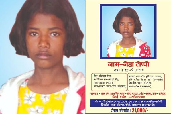 दरअसल, 4 फरवरी को दोपहर के वक्त नेहा घर में किसी को कुछ बताए कहीं चली गई। और शाम तक घर नहीं लौटी तो परिजनों ने इसकी शिकायत डोरंडा थाना में कराई। जिसके बाद पुलिस मामले की गंभीरता को देखते हुए नेहा की तलाश में जुट गई। इसके साथ ही पुलिस ने बच्ची के बारे में जानकारी देने वाले को 21 हजार रुपए देने की घोषणा भी की थी।