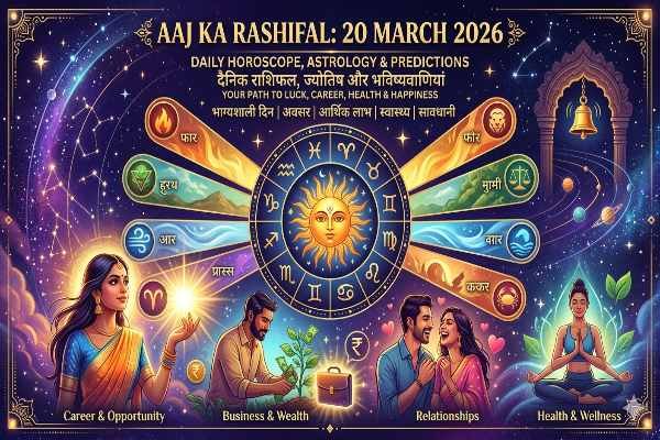 Aaj Ka Rashifal 20 March 2026: जानें मेष से मीन तक की सभी 12 राशियों का भाग्य। आज किसे मिलेगा आर्थिक लाभ और किसे रहना होगा सावधान? करियर और व्यापार की पूरी जानकारी।