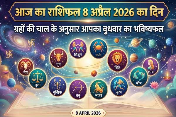 Aaj Ka Rashifal 8 April 2026: बुधवार, 8 अप्रैल 2026 का दिन ग्रहों की चाल के अनुसार बेहद खास होने वाला है। ज्योतिष गणनाओं के मुताबिक, कुछ राशियों के लिए यह दिन धन-धान्य और करियर में बड़ी सफलता लेकर आएगा, वहीं कुछ जातकों को सावधानी बरतने की सलाह दी गई है।