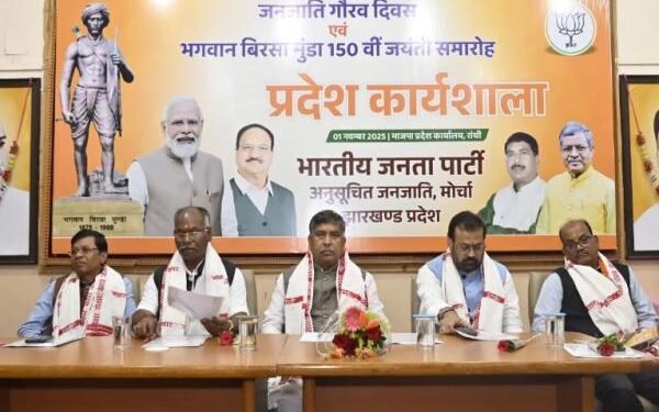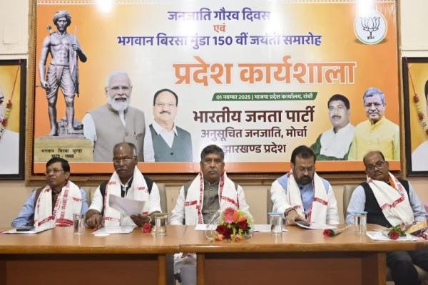 Ranchi : भगवान बिरसा मुंडा की 150वीं जयंती और जनजाति गौरव दिवस के अवसर पर शनिवार को भाजपा अनुसूचित जनजाति मोर्चा की ओर से एक विशेष कार्यशाला का आयोजन किया गया। कार्यक्रम की अध्यक्षता प्रदेश अध्यक्ष शिवशंकर उरांव ने की, जबकि संचालन राजेंद्र मुंडा ने किया।