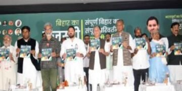 Breaking News : बिहार विधानसभा चुनाव से पहले महागठबंधन ने आज अपना घोषणा पत्र जारी कर दिया है। घोषणा पत्र का नाम ‘बिहार का तेजस्वी प्रण’ रखा गया है। इस घोषणापत्र में तेजस्वी यादव के 20 वादे शामिल हैं। Read More-चक्रवात मोन्था का कहर! कई ट्रेनें और फ्लाइट्स ठप, झारखंड में भी असर 20 महीने … Continue reading Breaking News : हर घर से एक को सरकारी नौकरी, फ्री बिजली और ₹2500 महीना-महागठबंधन का घोषणा पत्र जारी
