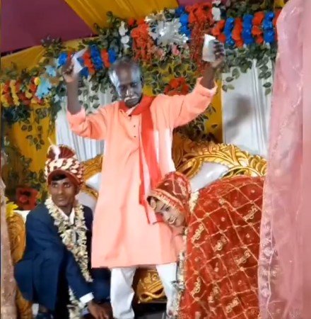 वीडियो में देखा जा सकता है कि एक बुजुर्ग सज-धज कर शादी के मंच पर दूल्हा-दुल्हन के साथ खड़े हैं. जैसे ही कपल उनका आशीर्वाद लेने झुकता है, चाचा जी अपनी ही मस्ती में झूमने लगते हैं. हाथ में नोट लिए वो नाचते हुए पूरे माहौल को हंसी-खुशी से भर देते हैं. उनका थिरकता हुआ देसी स्टाइल और चेहरे की खुशी इस पल को बेहद खास बना देती है. देखें वीडियो: