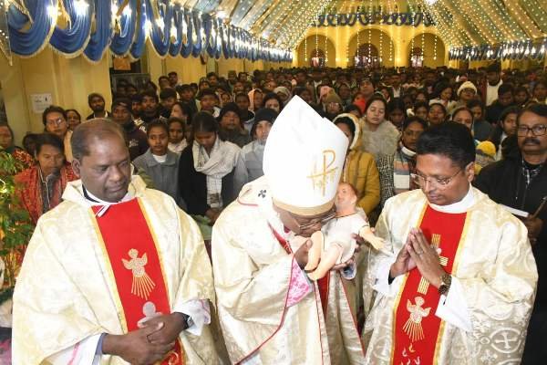 पुण्यरात की विशेष आराधना शुरू होते ही विश्वासियों ने उस पावन क्षण को स्मरण किया, जब परमेश्वर का पुत्र मानव रूप में धरती पर अवतरित हुआ। ठंड के बावजूद शहर के सभी प्रमुख चर्चों में देर रात से ही श्रद्धालुओं की भारी भीड़ उमड़ पड़ी।