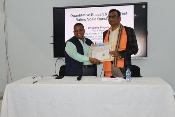 दिन के तीसरे सत्र में जमशेदपुर महिला विश्वविद्यालय के शिक्षा विभागाध्यक्ष, प्रो. संजय भुइयाँ द्वारा किया गया। उनका विषय था- “मात्रात्मक शोध उपकरण: टेस्ट, चेकलिस्ट, रेटिंग स्केल और प्रश्नावली।” प्रो. भुइयाँ ने इन शोध उपकरणों की संरचना, उनके उद्देश्य, तथा शैक्षिक और सामाजिक विज्ञान शोध में उनकी उपयोगिता को सरल भाषा में समझाया। उन्होंने एक अच्छे मापन उपकरण की मुख्य विशेषताओं—विश्वसनीयता, वैधता और वस्तुनिष्ठता—पर प्रकाश डाला तथा यह भी प्रदर्शित किया कि विभिन्न प्रकार के अध्ययनों के लिए उपयुक्त प्रश्नावली, रेटिंग स्केल और चेकलिस्ट कैसे तैयार किए जाते हैं। उनके व्यावहारिक उदाहरणों ने प्रतिभागियों को शोध उद्देश्यों के अनुरूप सही उपकरण चुनने या विकसित करने की स्पष्ट समझ प्रदान की। सभी प्रतिभागियों ने सक्रिय रूप से चर्चाओं में सहभागिता की, अपनी शंकाओं का समाधान प्राप्त किया एवं विषय विशेषज्ञों द्वारा प्रदान की गई वैचारिक स्पष्टता की सराहना की। दिन का समापन विशेषज्ञों के प्रति कृतज्ञता व्यक्त करते हुए हुआ, जिसके उपरांत राष्ट्रीय गान प्रस्तुत किया गया।