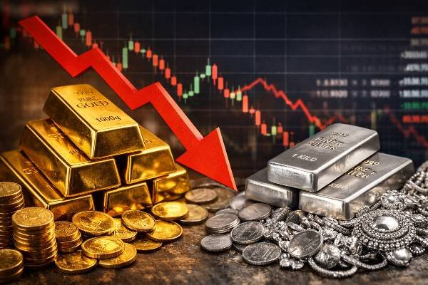 Gold Price Today : भारत में सोने और चांदी की कीमतों में हाल के दिनों में तेज गिरावट दर्ज की गई है। जनवरी में रिकॉर्ड स्तर छूने के बाद अब सोना करीब ₹2.46 लाख प्रति 100 ग्राम तक टूट चुका है। निवेशक अब यह जानना चाहते हैं कि गिरावट के पीछे असली कारण क्या हैं और आगे क्या रुख रह सकता है।