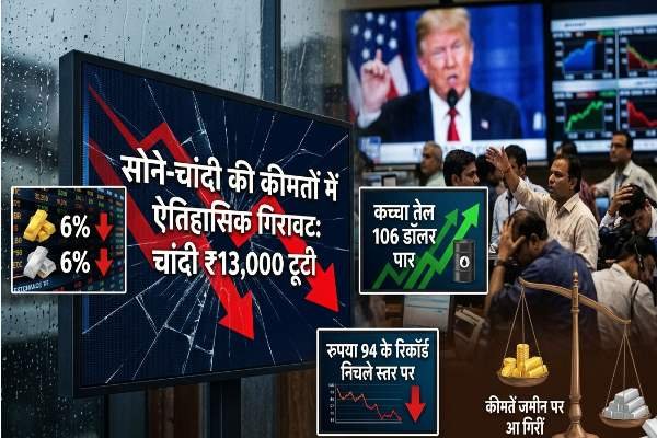 Gold-Silver Price: सोने और चांदी की कीमतों में 6% की भारी गिरावट! ट्रंप की 'बड़ी कार्रवाई' वाली चेतावनी के बाद चांदी ₹13,000 टूटी। जानें क्यों गिर रहे हैं दाम और क्रूड ऑयल की बढ़ती कीमतों का क्या होगा असर।