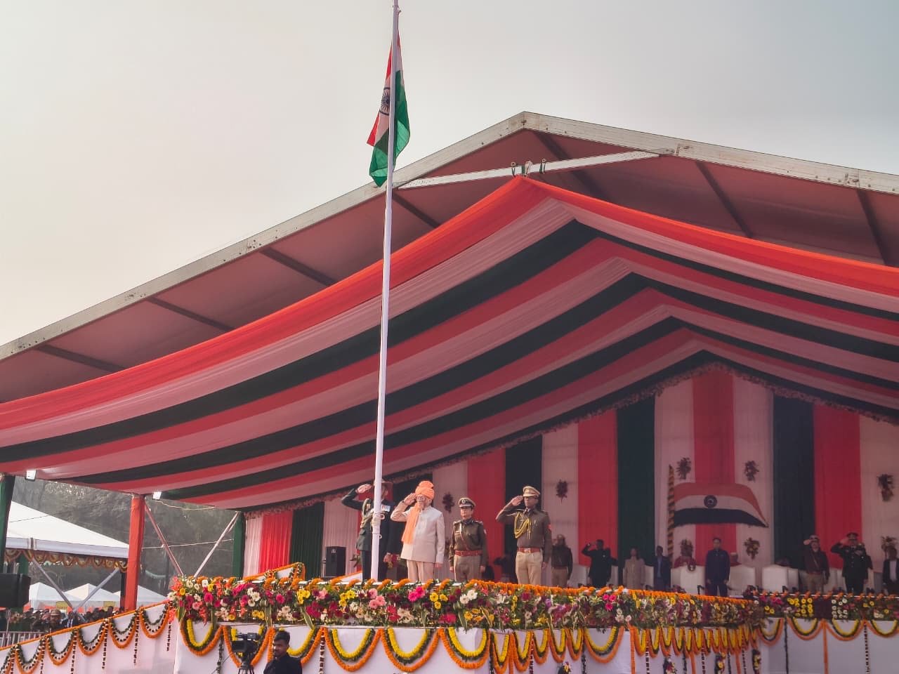 Ranchi News: राजधानी रांची के ऐतिहासिक मोरहाबादी मैदान में राज्यपाल संतोष गंगवार ने झाँडोत्तोलन किया. साथ ही परेड का निरिक्षण कर सलामी ली. गवार्नर ने राज्य वासियो को गणतंत्र दिवस कि बधाई दी है. परेड में 18 टुकड़ी शामिल हुई. जिसमें छत्तीसगढ़ पुलिस कि प्लाटुन गेस्ट के रूप में शामिल हुई.साथ ही 12 विभाग कि झांकी परेड में शामिल हुई.