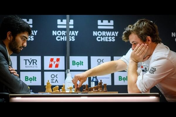 शतरंज की दुनिया ने देखा कि 19 वर्षीय भारतीय प्रतिभाशाली खिलाड़ी डी. गुकेश ने एक महत्वपूर्ण मुकाबले में मौजूदा विश्व चैंपियन मैग्नस कार्लसन को पराजित किया. रविवार को नॉर्वे शतरंज 2025 टूर्नामेंट में गुकेश ने अपने करियर में पहली बार क्लासिकल फॉर्मेट में कार्लसन को हराकर ऐतिहासिक जीत हासिल की. सफ़ेद मोहरों से खेलते हुए कार्लसन ने खेल में पूरे समय लगातार दबाव बनाए रखा. हालांकि, गुकेश ने सतर्कता के साथ खेल में अपना बचाव किया.