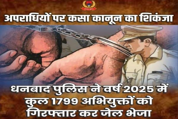 Jharkhand News: अपराधियों पर कसा कानून का शिकंजा, वर्ष 2025 में धनबाद पुलिस ने 1799 को भेजा जेल