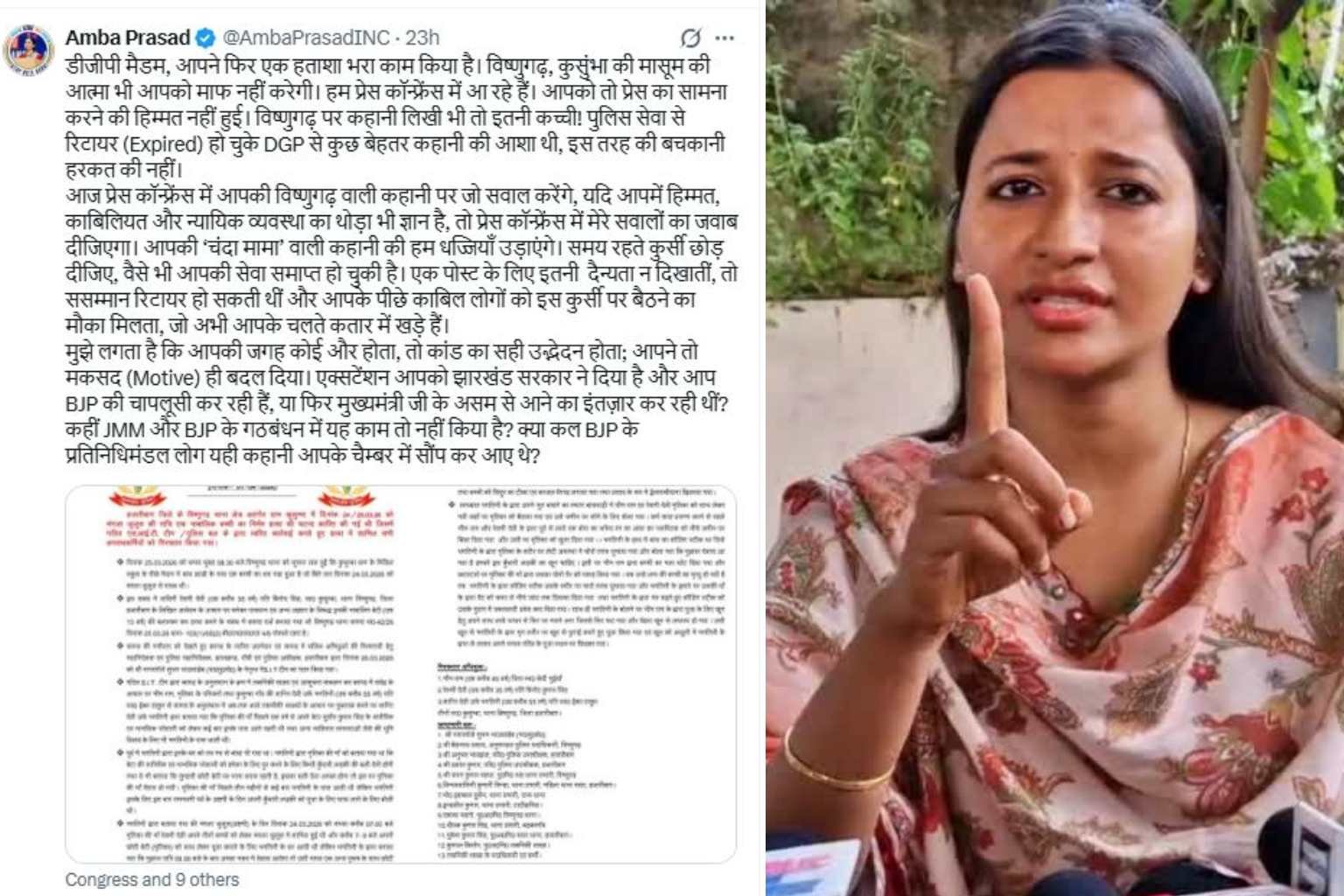 झारखंड के चर्चित विष्णुगढ़ कांड को लेकर राजनीतिक बयानबाज़ी तेज हो गई है। कांग्रेस विधायक Amba Prasad ने पुलिस और राज्य प्रशासन पर गंभीर आरोप लगाते हुए पूरे मामले की निष्पक्षता पर सवाल खड़े किए हैं।