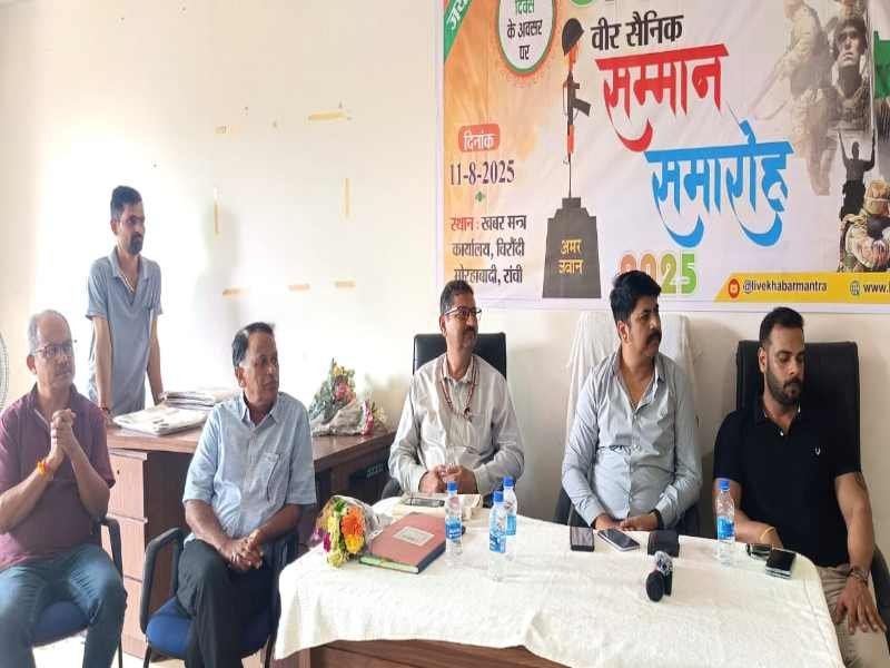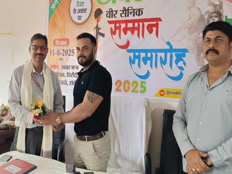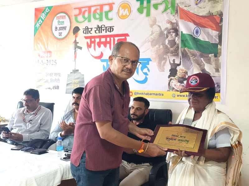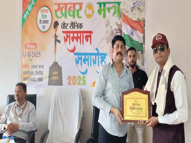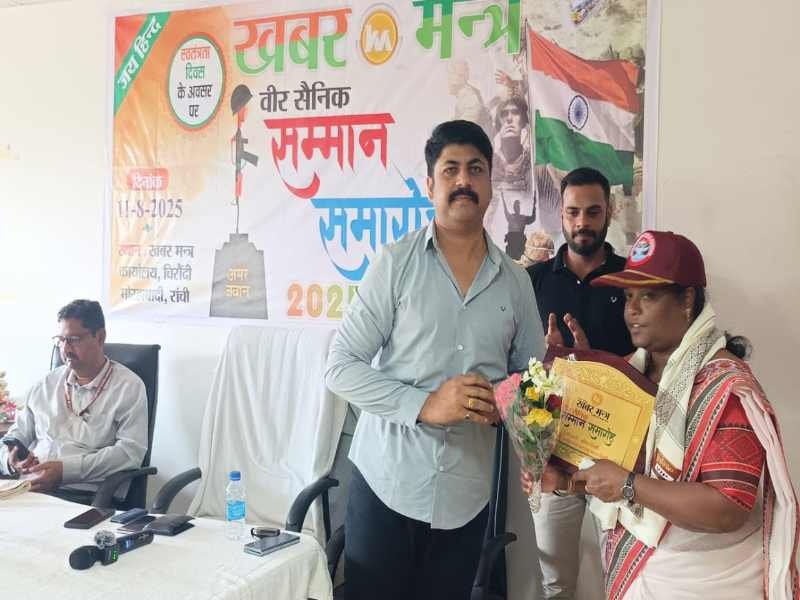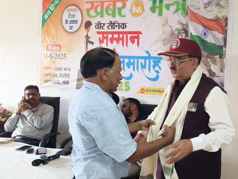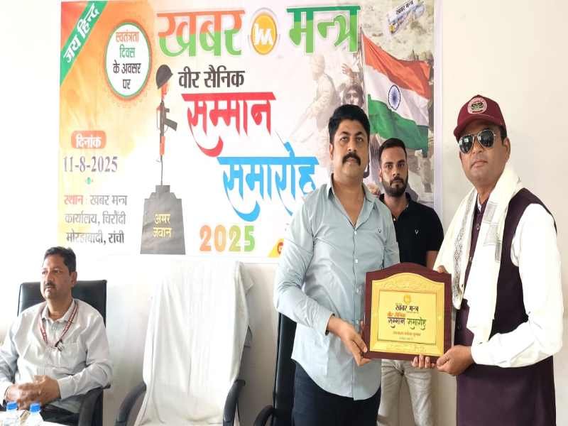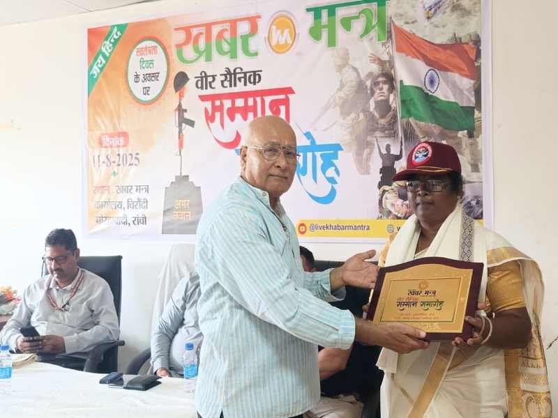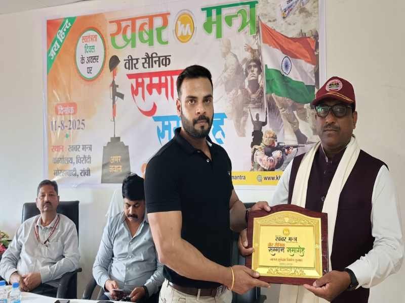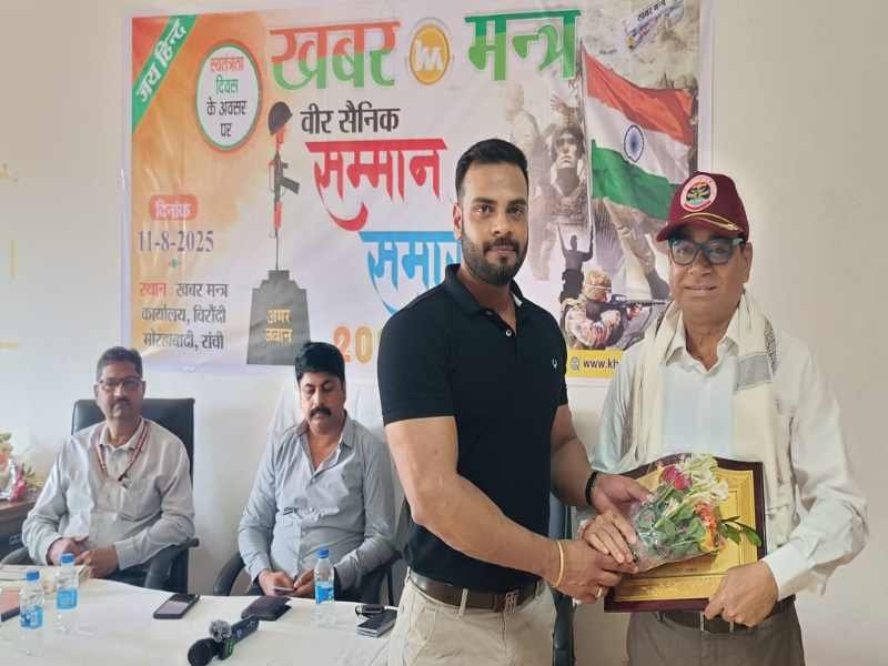 Jharkhand: स्वतंत्रता दिवस के पावन अवसर पर ख़बर मंत्रा की ओर से झारखंड में भव्य “वीर सैनिक सम्मान समारोह” का आयोजन किया गया। इस कार्यक्रम का उद्देश्य उन वीर सपूतों और वीर नारियों को नमन करना था, जिन्होंने अपने अदम्य साहस, अनुशासन, त्याग और समर्पण से न केवल झारखंड बल्कि पूरे भारत का मस्तक गर्व से ऊँचा किया।