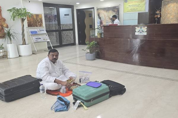इस पर विधायक भड़क गए और रिसेप्शन के सामने धरने पर बैठ गए. उन्होंने अपना सामान वहीं रख दिया और फिर वहीं बैठकर टिफिन खोल कर खाना खाने लगे.