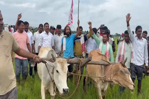 इन तमाम प्रशासनिक बंदिशों के बावजूद, झारखंड लोकतांत्रिक क्रांतिकारी मोर्चा के केंद्रीय वरीय उपाध्यक्ष देवेंद्रनाथ महतो चकमा देकर आंदोलन स्थल पर पहुंचे। वे कार्यकर्ताओं के साथ कंधे पर हल और बैल लेकर आए और विरोध स्वरूप प्रस्तावित रिम्स-2 की जमीन पर खुद हल जोतते नजर आए।