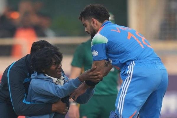 जिस वक्त यह घटना हुई उस भारतीय टीम बैटिंग कर रही थी। उस समय विराट कोहली नॉन–स्ट्राइकर एंड पर खड़े थे और युवक तेज़ी से उनकी ओर बढ़ते हुए पैर छूने की कोशिश करने लगा।