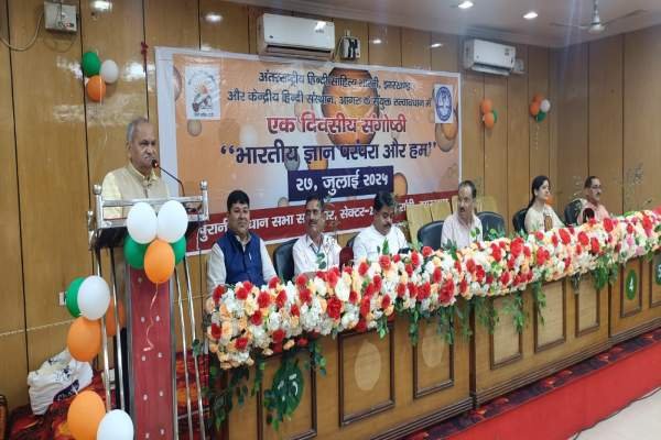 रांची। केंद्रीय हिंदी संस्थान, आगरा एवं अंतरराष्ट्रीय हिंदी साहित्य भारती, झारखंड इकाई के संयुक्त तत्वावधान में आज“भारतीय ज्ञान परंपरा और समकालीन समाज” विषय पर एक दिवसीय संगोष्ठी का भव्य आयोजन हुआ। यह आयोजन रांची स्थित ऐतिहासिक पुराना विधानसभा सभागार में संपन्न हुआ, जिसमें देशभर से आए विद्वानों, साहित्यकारों, शोधार्थियों और सांस्कृतिक कार्यकर्ताओं की उल्लेखनीय भागीदारी रही।