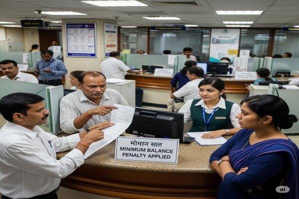 - यह जुर्माना खाते के न्यूनतम आवश्यक बैलेंस और वास्तविक बैलेंस के बीच के अंतर पर एक निश्चित प्रतिशत के रूप में वसूला जा सकता है.