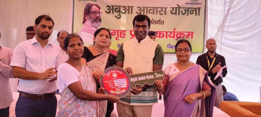 रांची: अबुआ आवास योजना के तहत रांची जिले के 3533 परिवारों ने आज अपने नये आशियाने में गृह प्रवेश किया। जिला के सभी 18 प्रखंडों में आयोजित इस विशेष कार्यक्रम में लाभुकों को उनके नवनिर्मित घर की चाबियाँ सौंपी गईं। नगड़ी प्रखंड के साहेर पंचायत में आयोजित मुख्य कार्यक्रम में उपायुक्त-सह-जिला दंडाधिकारी श्री मंजूनाथ भजन्त्री ने लाभुकों को गृह प्रवेश कराया और चाबियाँ सौंपीं। अजय नायक और उनकी पत्नी जैसे कई लाभुकों की आंखों में आज खुशी के आंसू थे। उन्होंने कहा, सरकार ने हमारे जीवन का सबसे बड़ा सपना पूरा कर दिया। पहले खपरैल मकान था, अब पक्का घर मिला है।