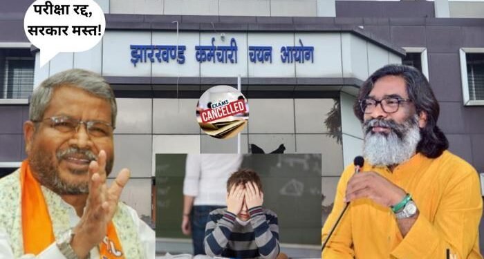 Ranchi : जेएसएससी के द्वारा झारखंड तकनीकी/ विशिष्ट योग्यताधारी स्नातक स्तरीय संयुक्त प्रतियोगिता परीक्षा एक दिन पहले ही रद्द करने के बाद झारखंड की राजनीति में एक बार फिर से बयानजाबाजी शुरु हो गई है। नेता प्रतिपक्ष बाबूलाल मरांडी ने इसको लेकर हेमंत सरकार पर बड़ा हमला बोला है। उन्होने इसे छात्रों के साथ विश्वासघात बताया है।