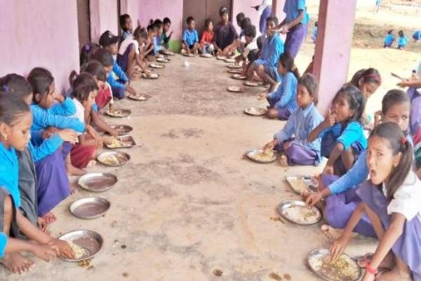 कंधे पर मिड डे मील ढोते हुए बच्चों को विडियो वायरल